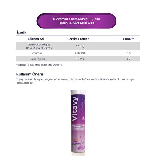 Vitavy C Vitamini, Çinko, Kara Mürver İçeren Takviye Edici Gıda | Sambucus Nigra